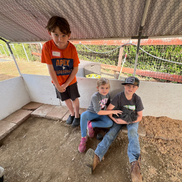 My daughter, the animal lover, got to spend lots of time with their chickens, rabbits, goats, cat, dog and horses. My son got to run around and enjoyed getting dirty by helping clean up the animal areas and painting goats